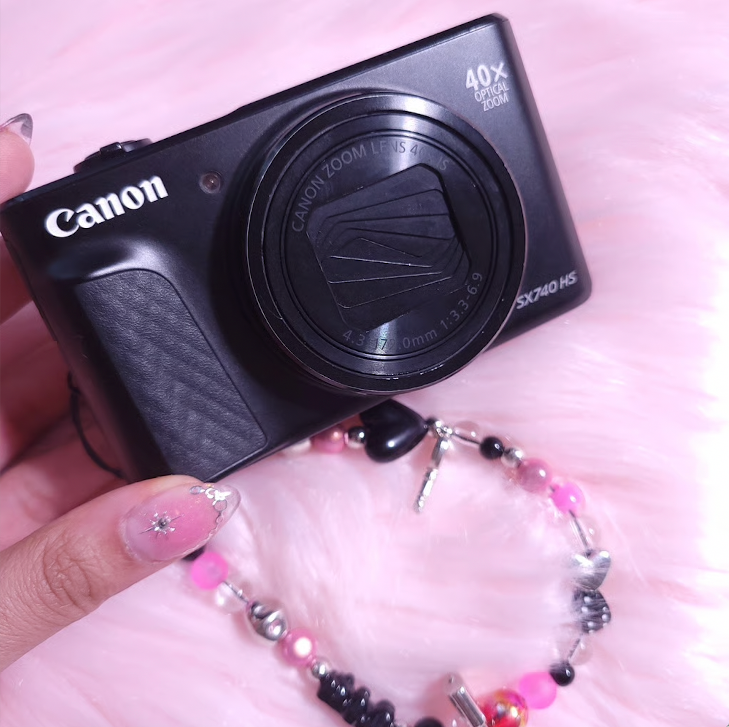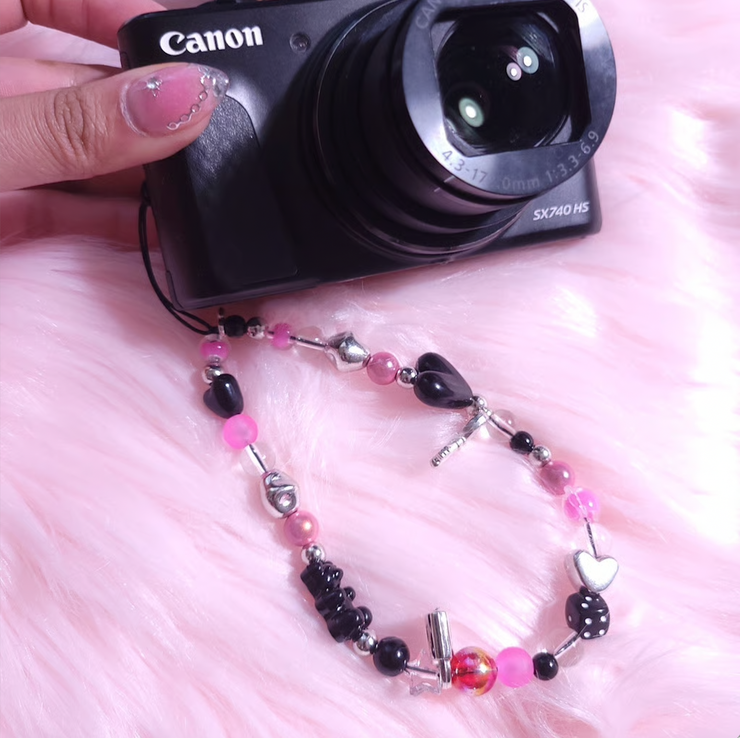 Takes beautiful pictures, comes with charm strap, charger and sd card