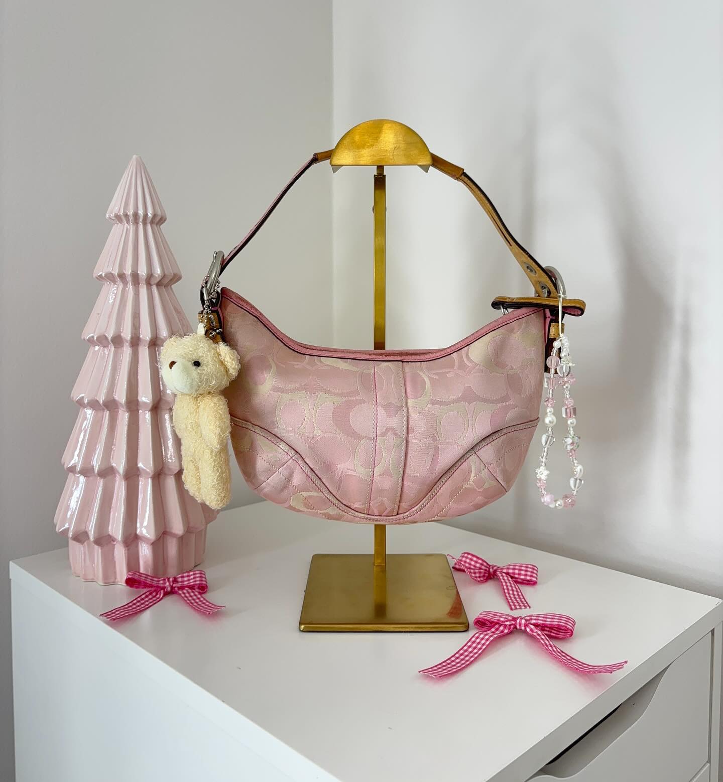This stunning pink optic bag is a versatile statement piece, combining functionality with timeless Coach elegance. Don’t miss out on this rare treasure! ✨
