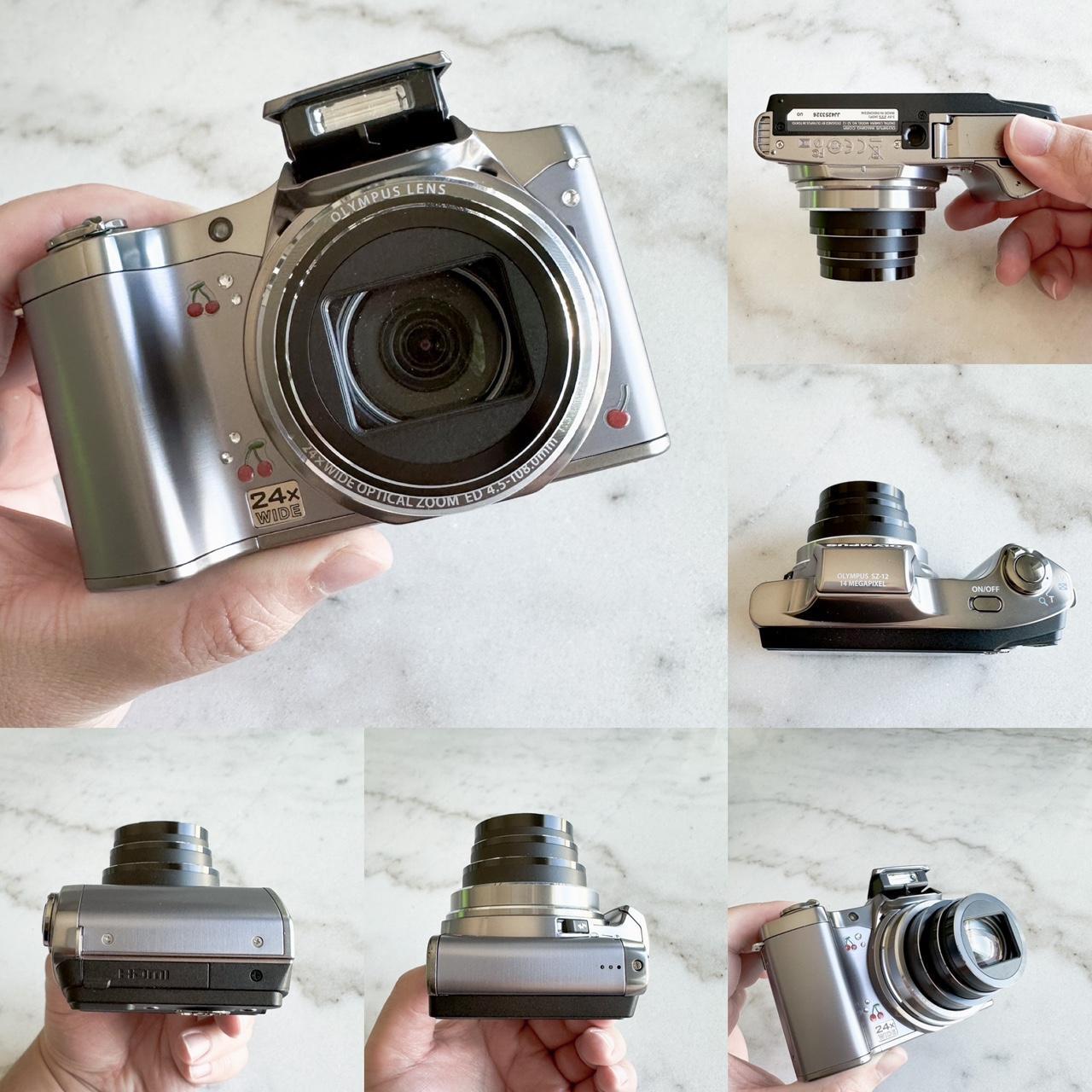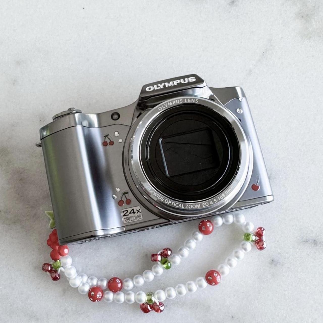 Olympus SZ-12 Super Zoom compact digital camera. This point-and-shoot digicam has a fun pop-up flash and 24x zoom – making it perfect for concerts and events. It also comes with a cute handmade beaded wrist strap ‧₊ ᵎ🍒 ⋅ ˚✮