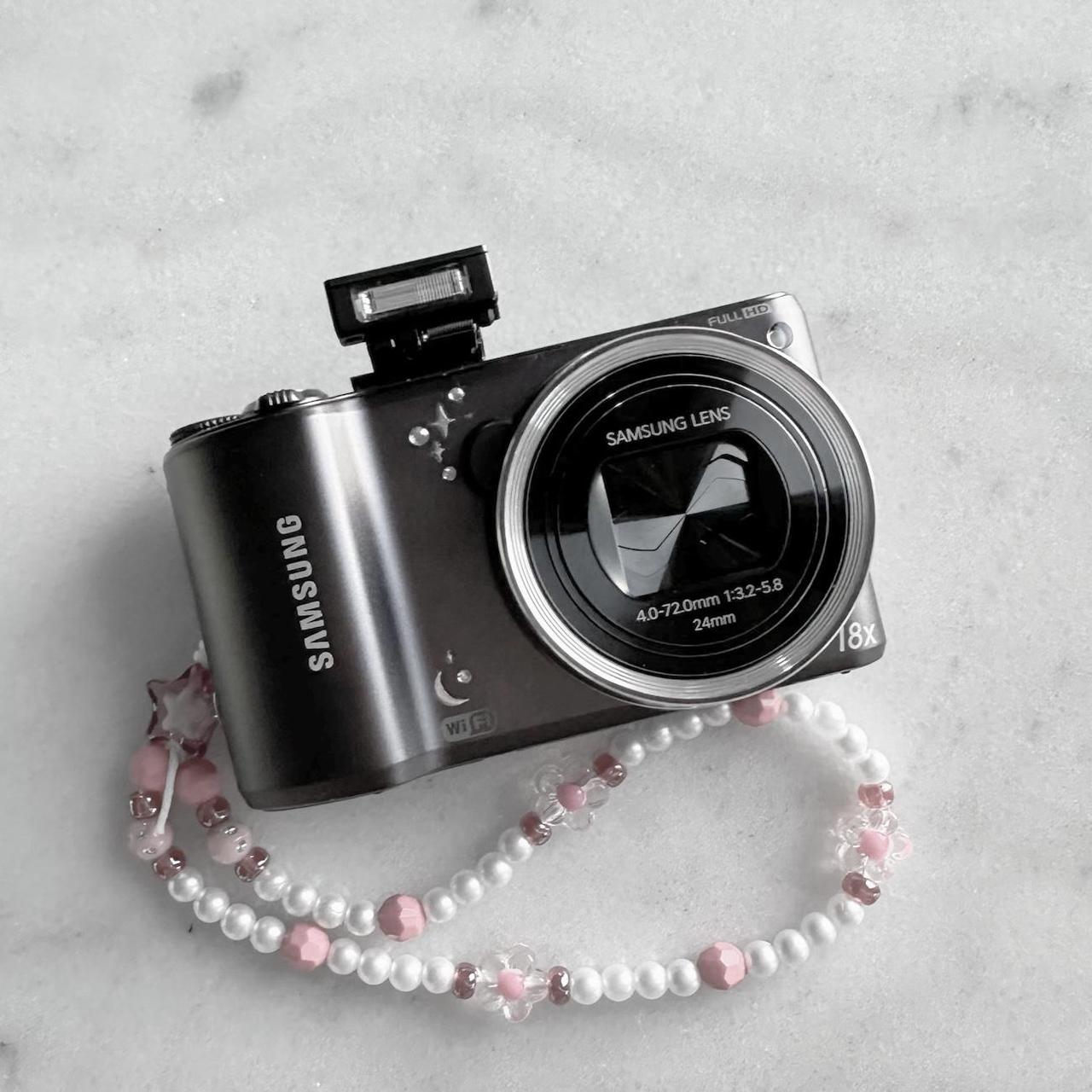 Samsung WB250F digital camera. This digicam has 18x zoom, making it perfect for zooming in at concerts and events! Comes with super cute handmade beaded wrist strap.