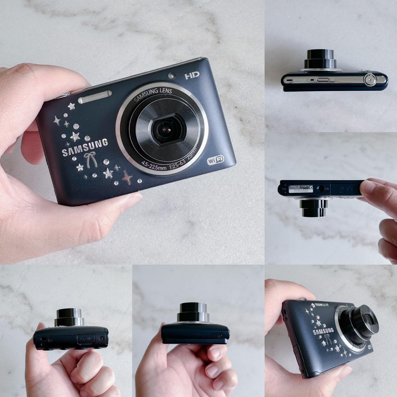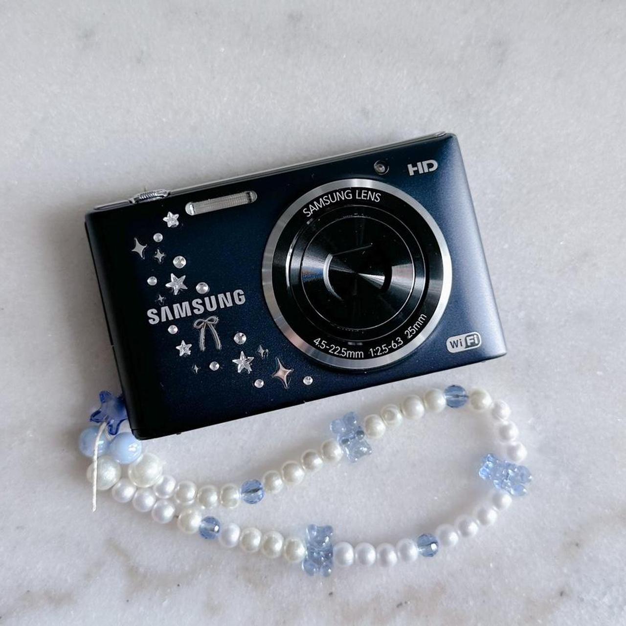 Samsung ST150F digital camera. This digital camera comes in a super cute navy blue & is super tiny. It has a super bright flash & is the perfect party cam!