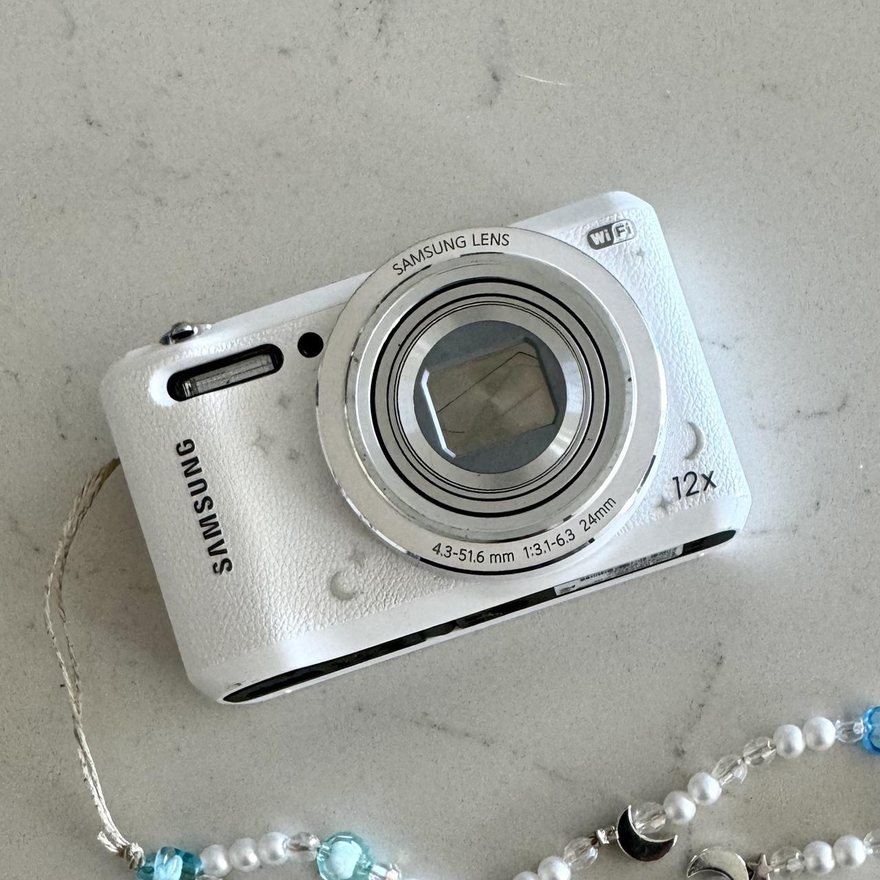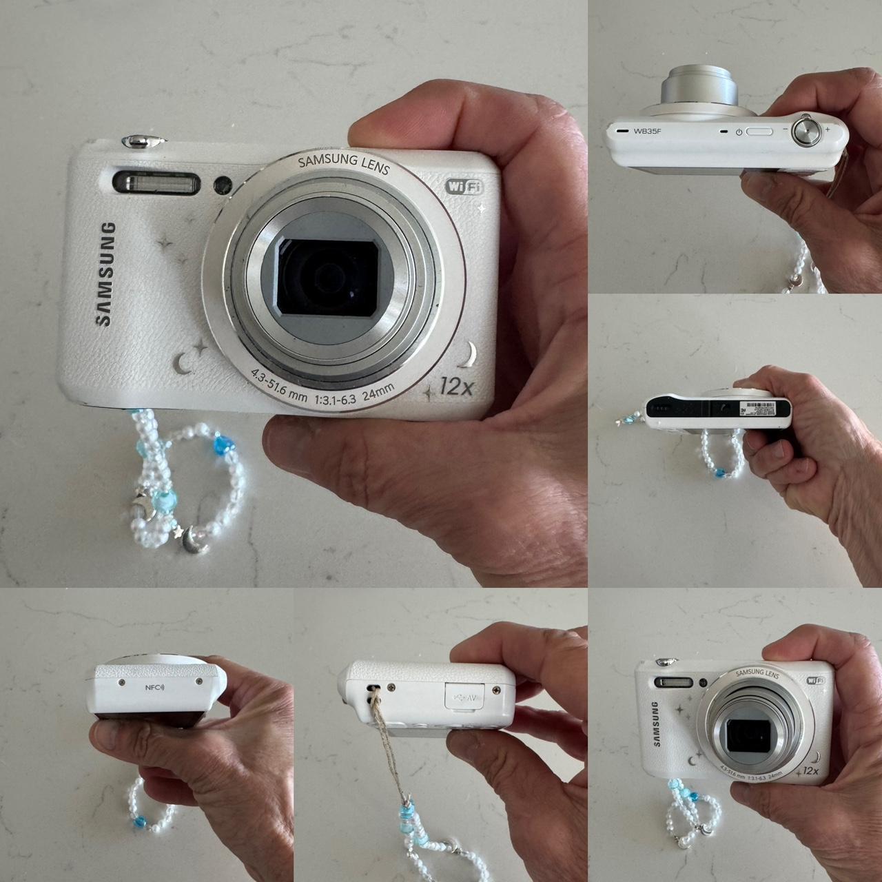 Samsung WB35F digital camera. This super cute pearly white digicam has easy sharing to smartphones ! simply tap the camera to your smartphone to instantly share an image.