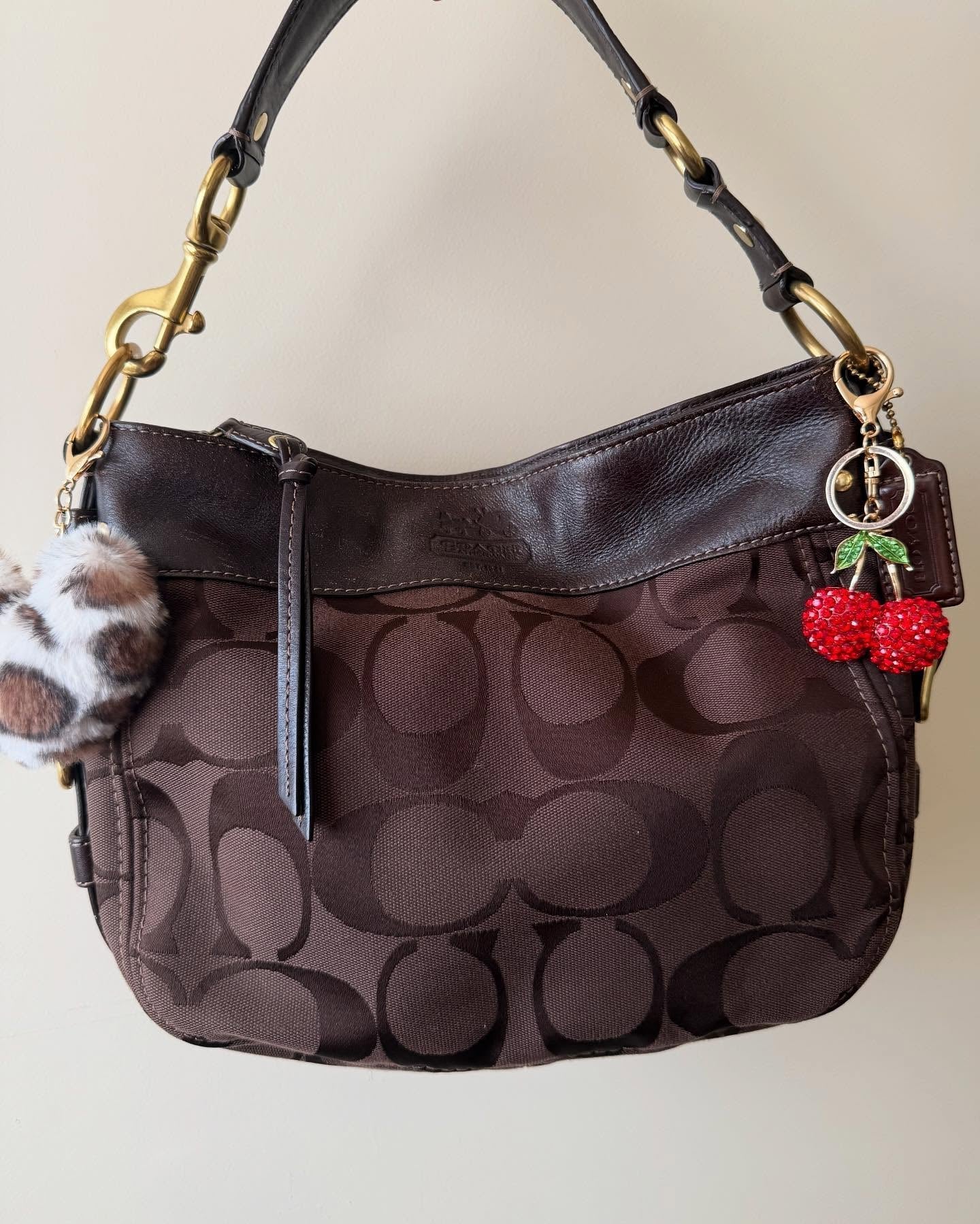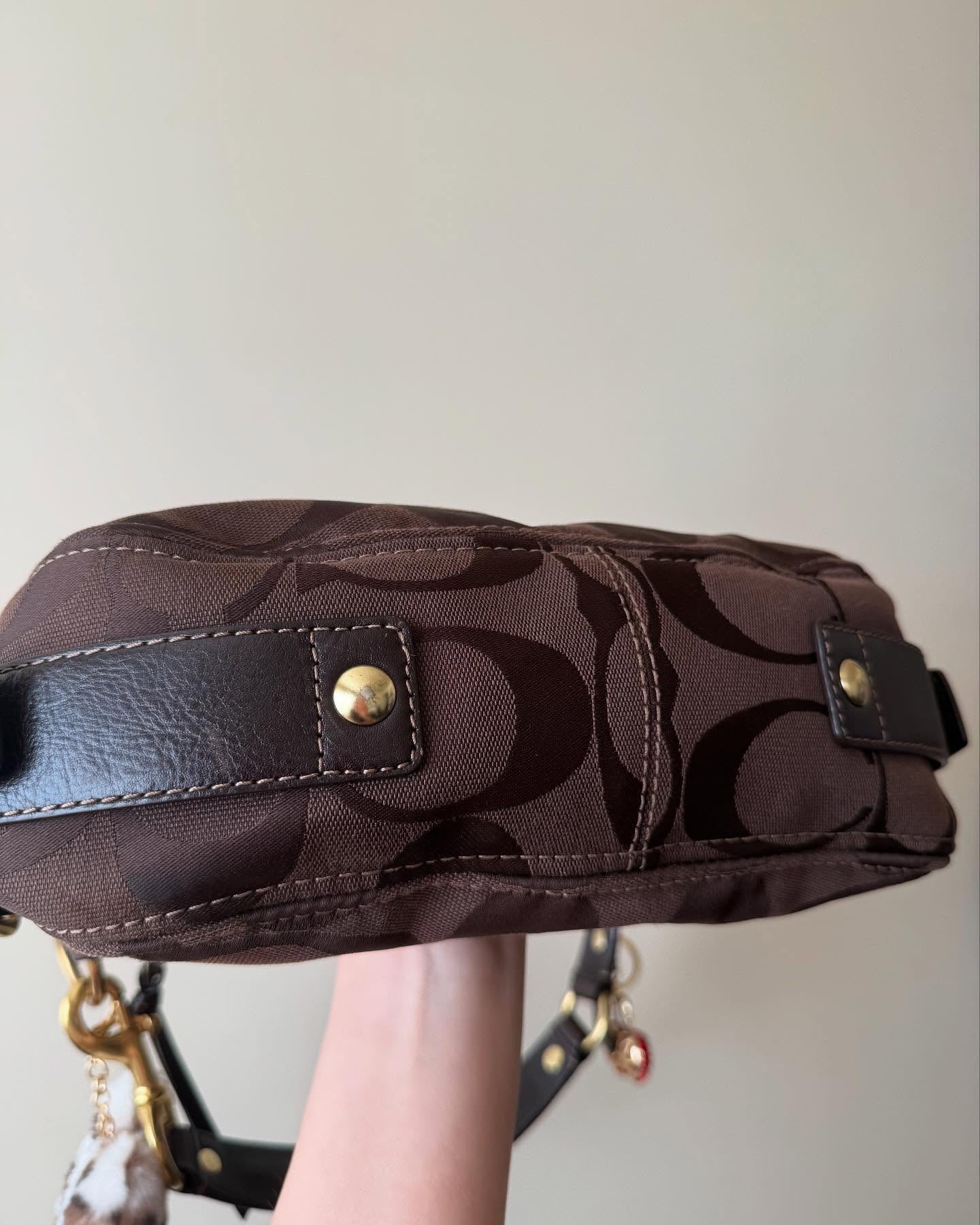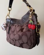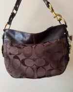 vintage authentic coach brown signature jacquard zoe hobo bag with gold hardware ✨