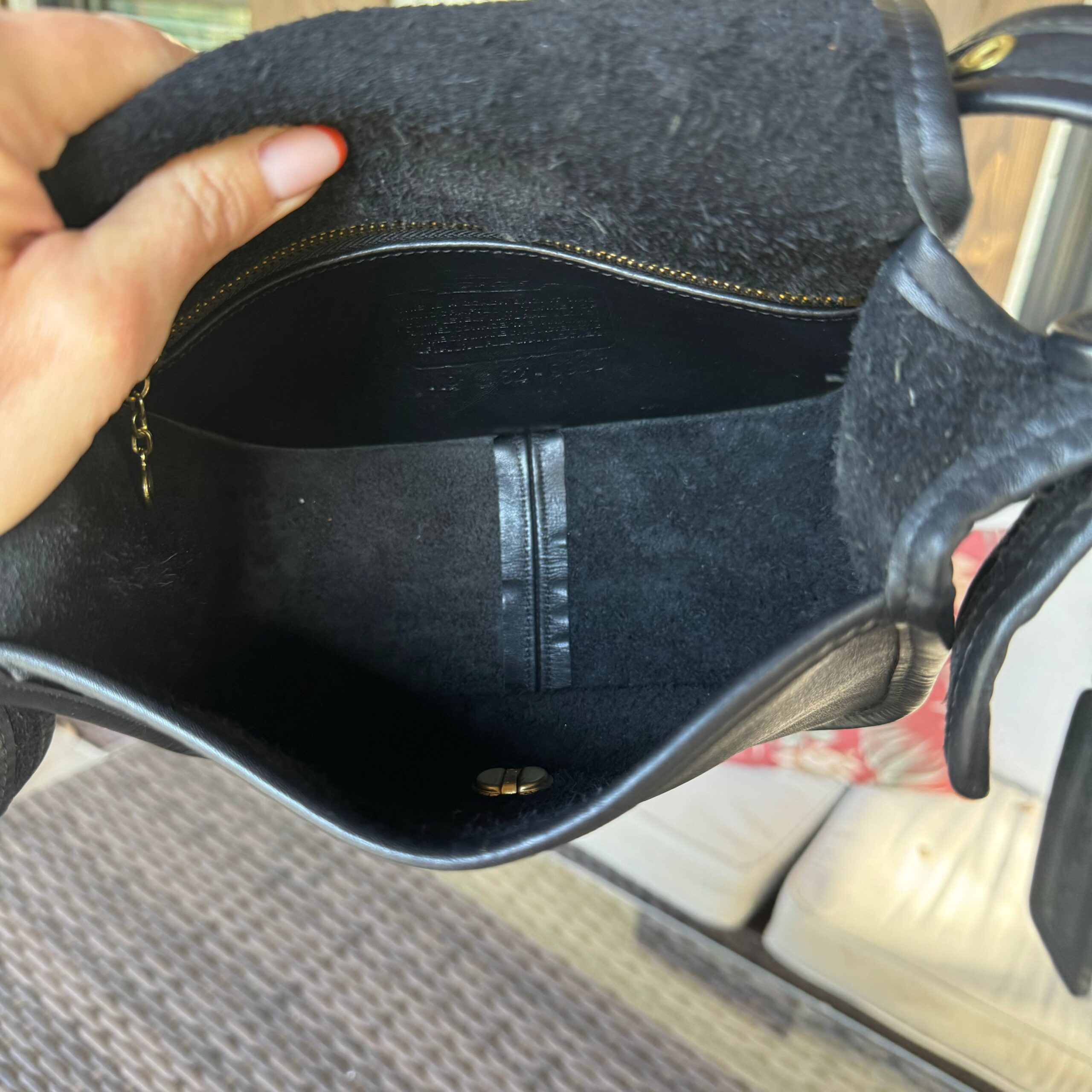 Vintage Coach Black #9965 Legacy Small Flap in beautiful condition! No, she is not a trail bag but has somehow gotten that name. Made in 1998 in Turkey! No stains or tears. She does have two indents across her back. She was vacuumed, cleaned with leather CPR. I did remove her solid brass Turlock hardware and removed the chipped clear shellac coating on the Turnlock parts and cleaned to a bright golden shine. Other hardware was cleaned to complement the shiny Turlock so that all ages at a similar rate. Outside leather was cleaned and conditioned with Leather CPR.