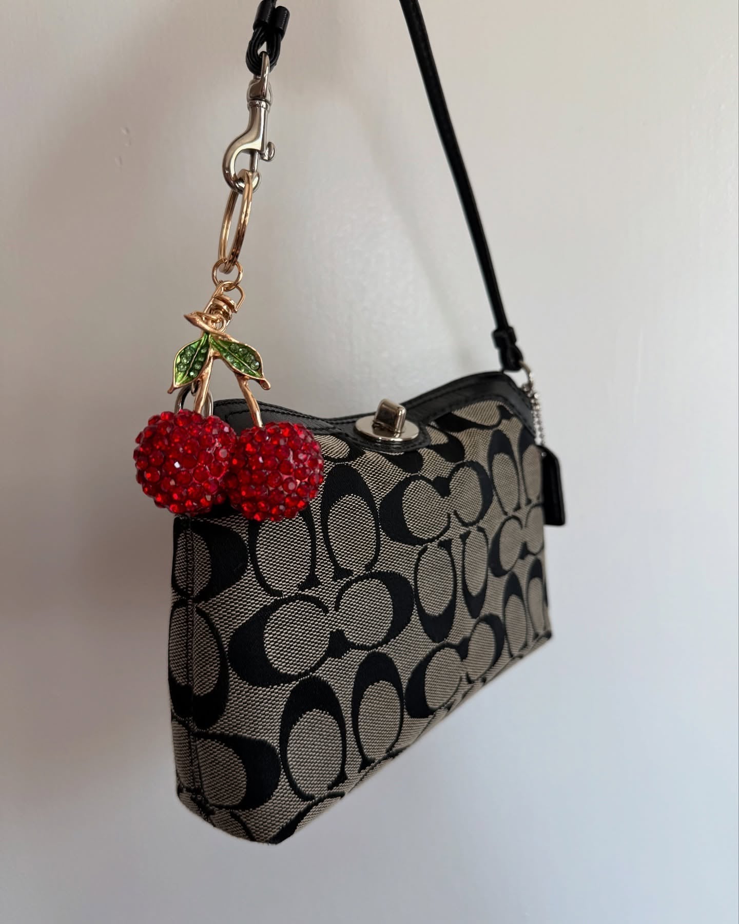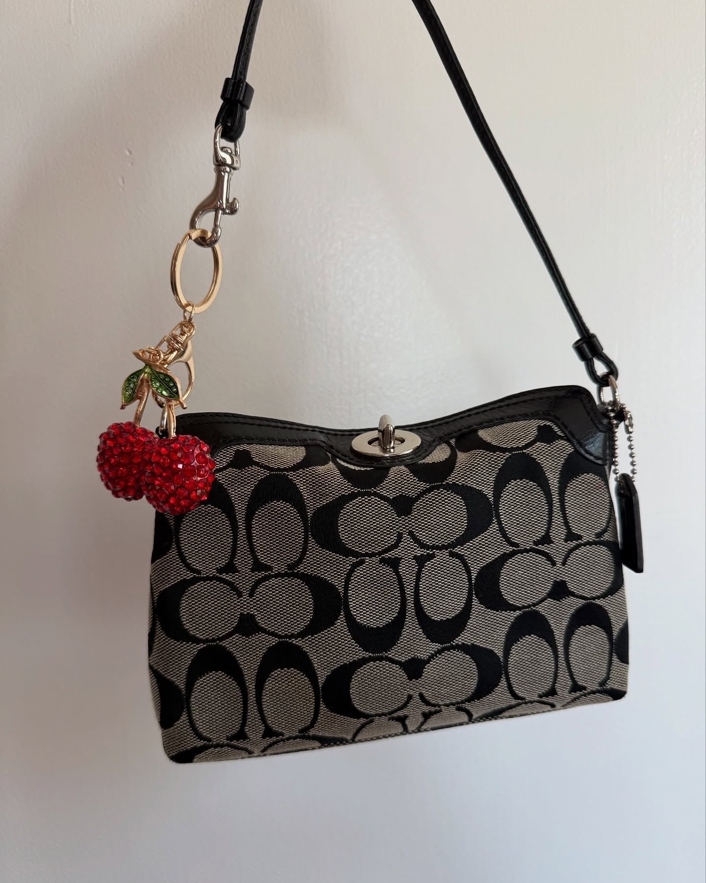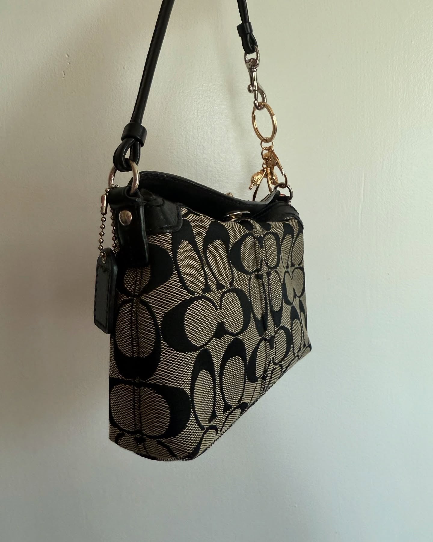 vintage authentic coach black & gray signature mini bag/ wristlet with turnlock 🖤 charm is used as an extender